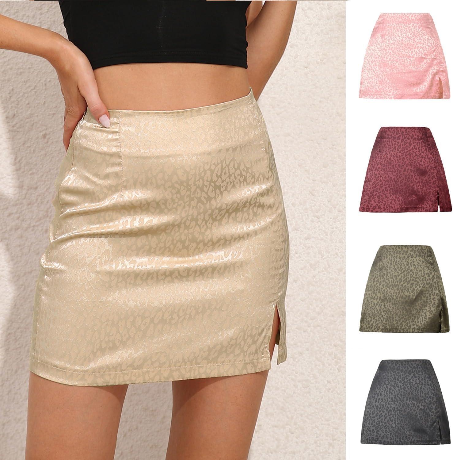 ALCEA ROSEA Faux Suede Leopard Mini Skirt for Women High Waist Sexy Skirt with Slit(Beige)