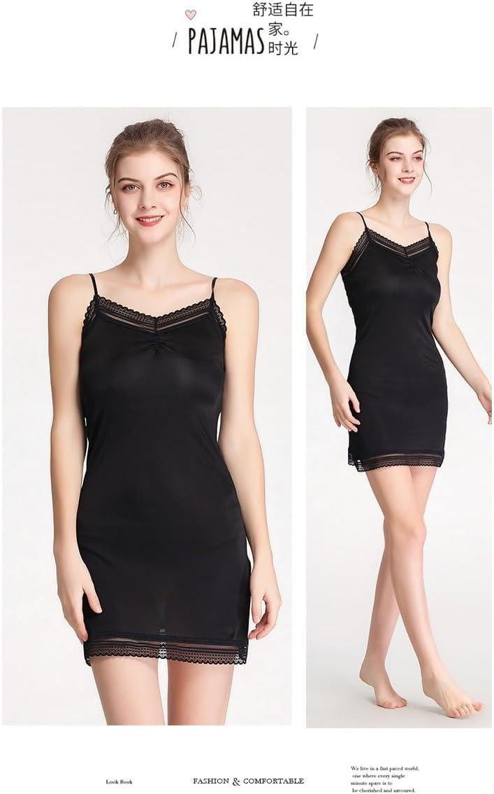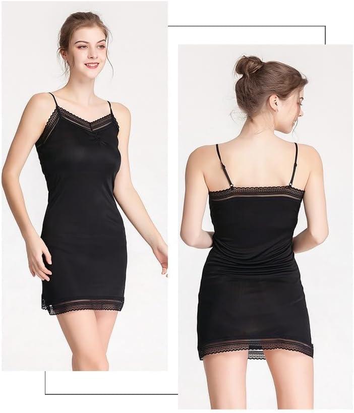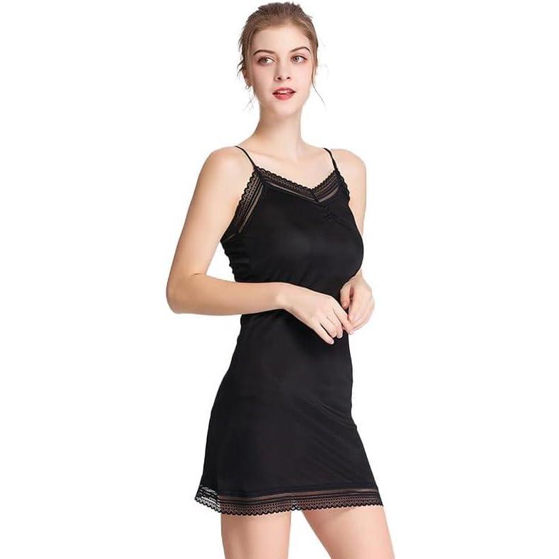 imageALCEA ROSEA Womens Full Slip for Under Dresses Adjustable Spaghetti Strap AntiStatic Nylon Lace Mini Dress Lingerie 3895Black