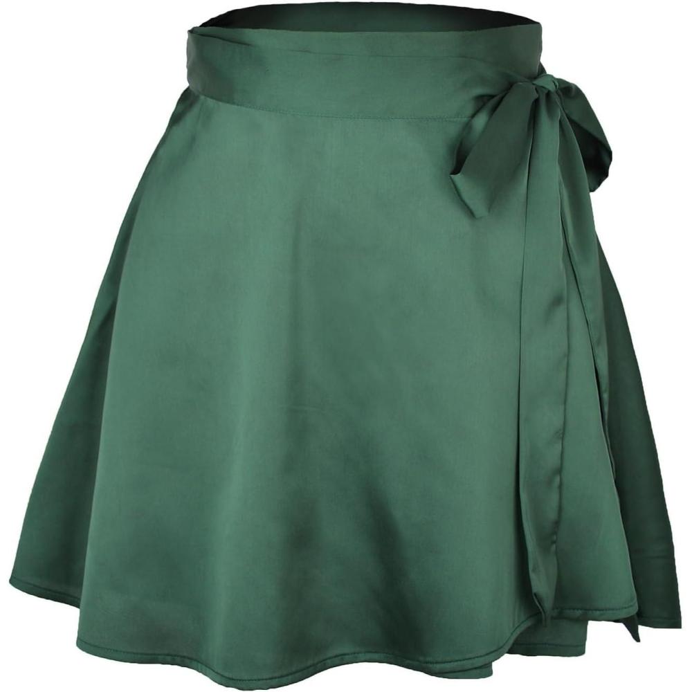 ALCEA ROSEA Womens Satin Mini Skirt High Waist Adjustable Self Tie Casual Skirts(Army Green)