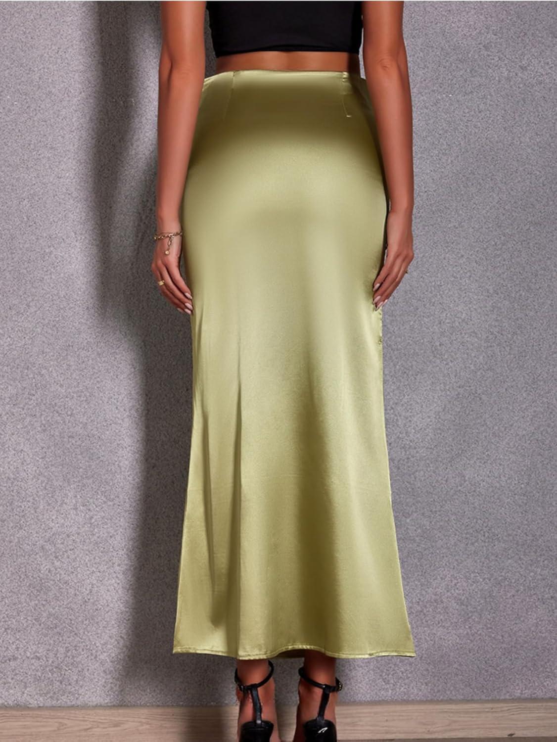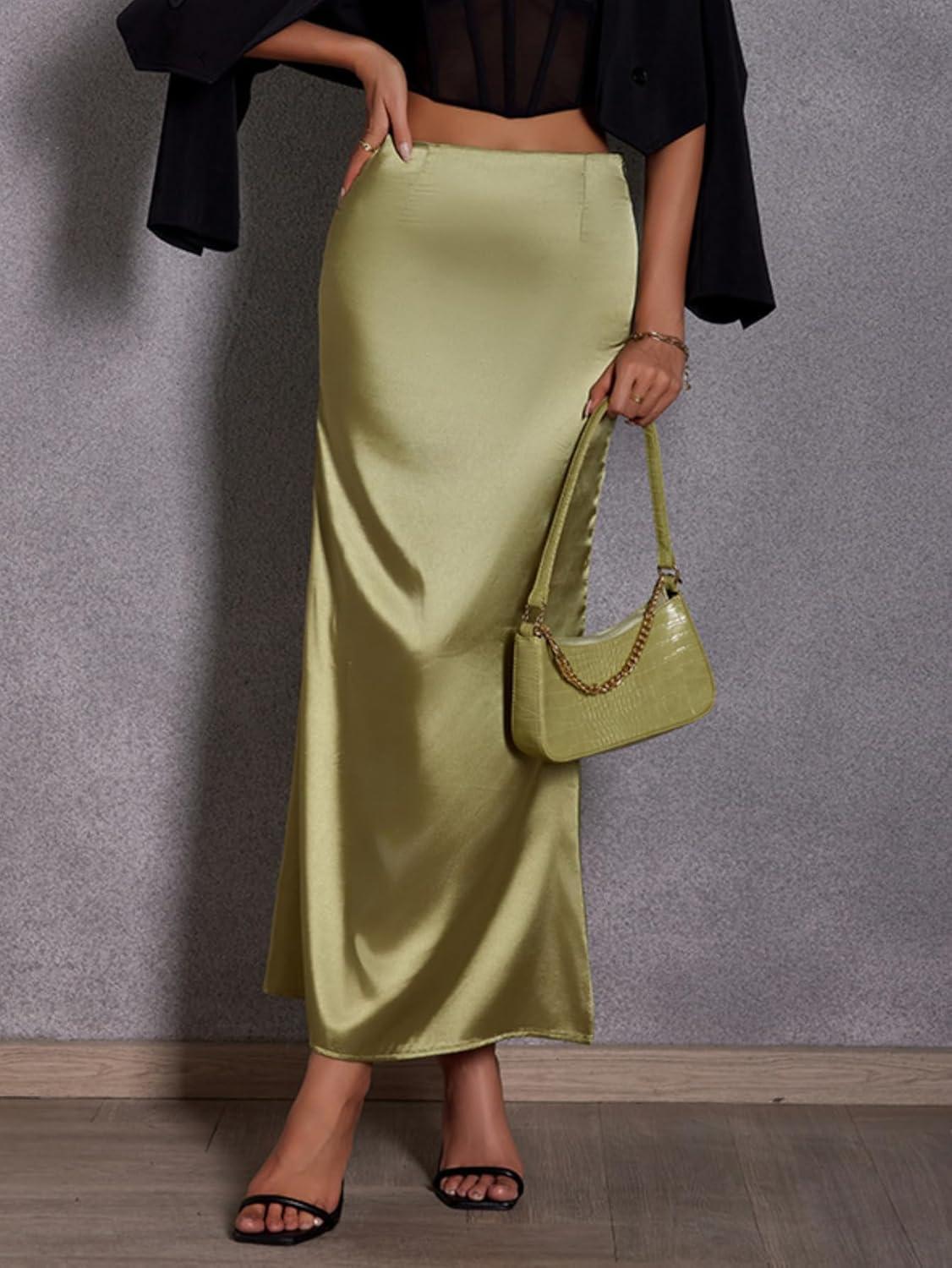 ALCEA ROSEA Womens Silky Satin Maxi Skirt Elegant High Waisted Long Pencil Ladies Skirts for Office Work Party 7867(Light Green)
