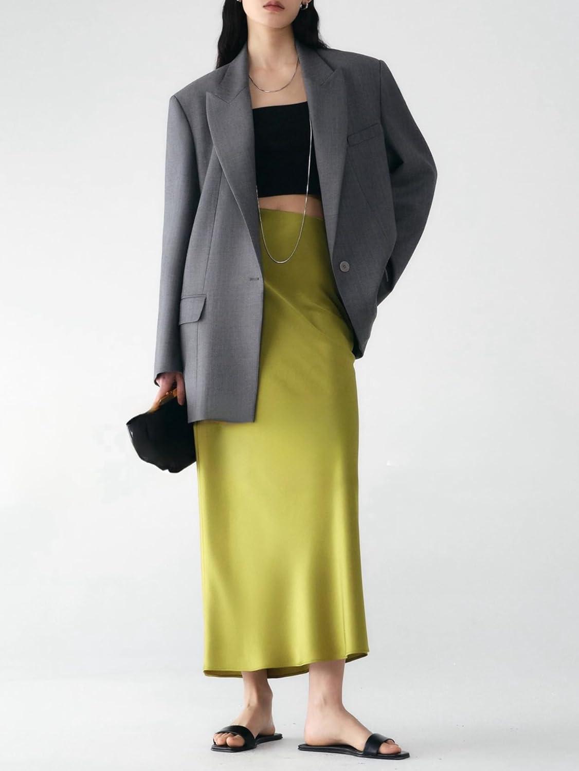 ALCEA ROSEA Womens Silky Satin Maxi Skirt Elegant High Waisted Long Pencil Ladies Skirts for Office Work Party 7867(Grey)
