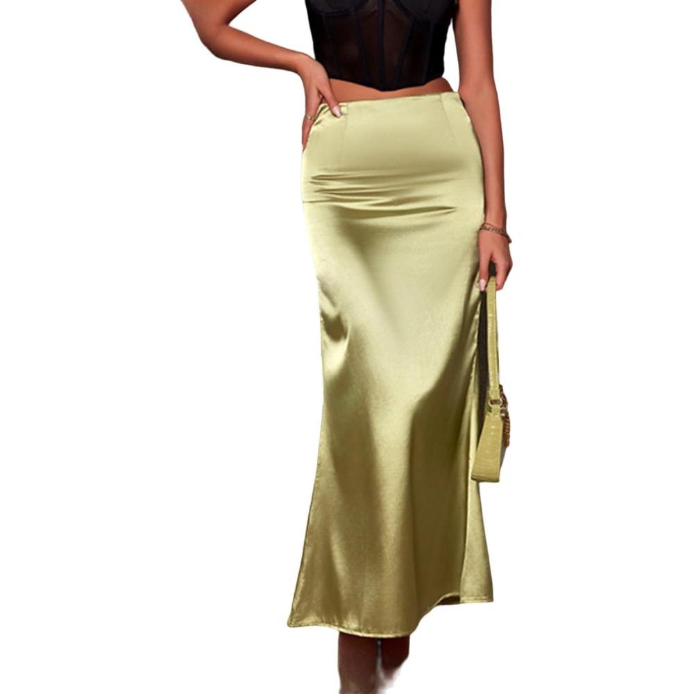 imageALCEA ROSEA Womens Silky Satin Maxi Skirt Elegant High Waisted Long Pencil Ladies Skirts for Office Work Party 7867Light Green
